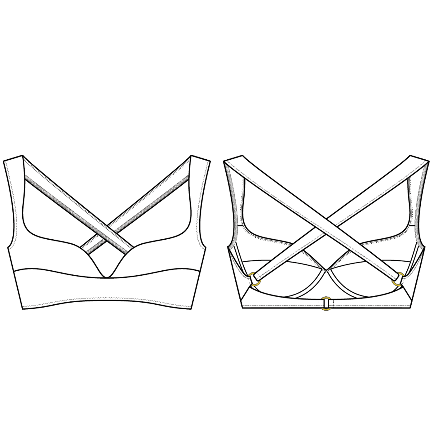 Our bandeau top comes with detachable straps and removable padding. It has soft boning at the side and bust seams to maintain a flattering shape.