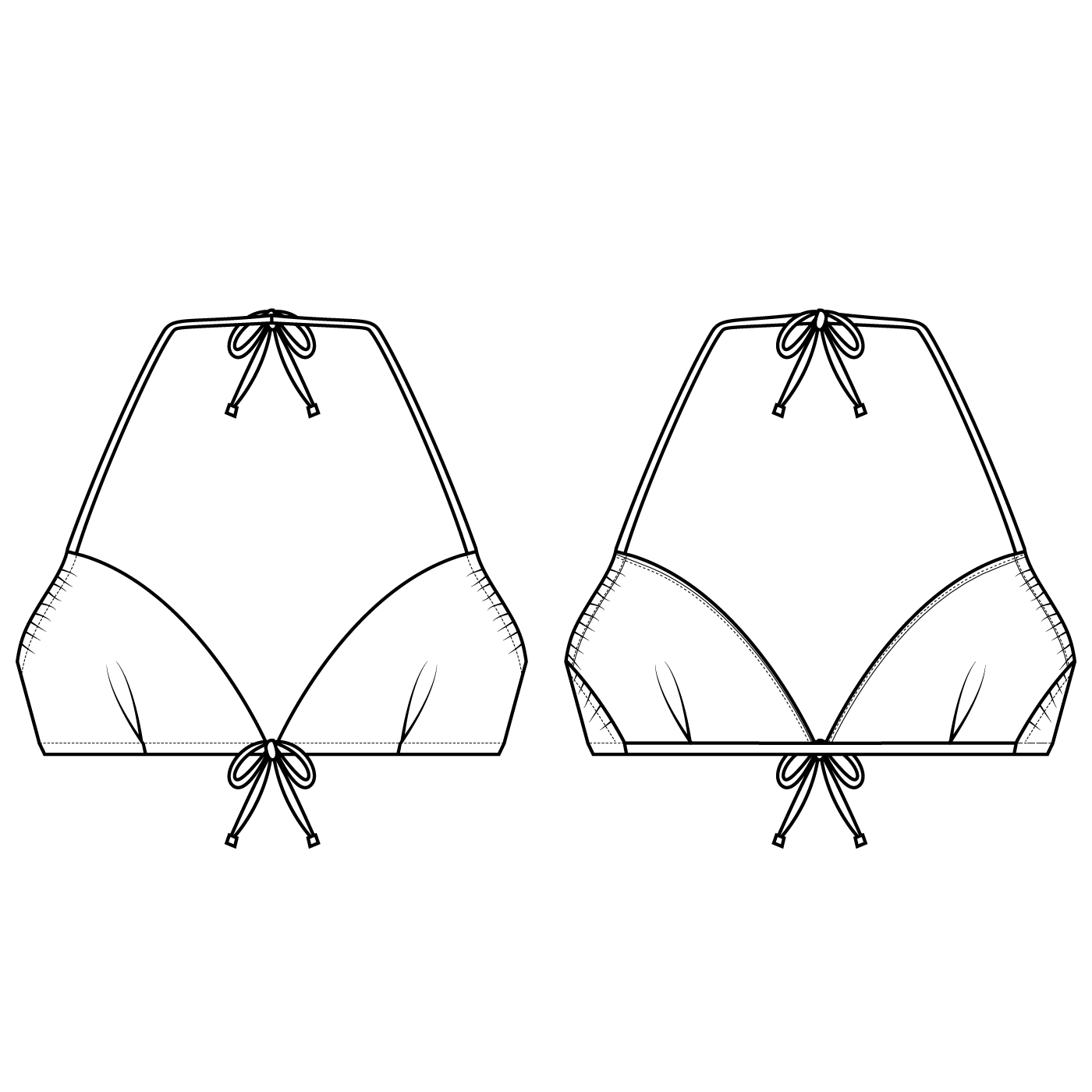 This classic triangle cut bikini top has been updated by making it tie at the front. The triangle shape can be altered to your preferred amount of gathering at the sides and under the bust.